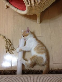 ソファの下で何かガリガリやっているなーと常々思っていたのですが、、、パイプの保護シートを外してしまっていた様子。とはいえ、メルにとってはジャングルジムだったこのソファももうすぐお別れ。今のうちに思いっきり遊んでおいてくださいな。