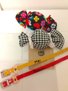 前からネットで見かけて欲しいなーと思ってたテップカッター。沖縄で買っちゃいました。ニャン荼羅アートにも精が出そう♪メルとソナタへのお土産。キャットニップ入りのキャンディーの形をしたおもちゃと、首輪です。それぞれの名前を入れてもらいました。色はパパが選んだよ。