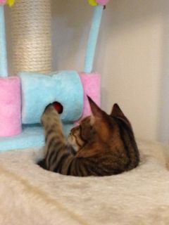 母猫とはぐれたらしく、鎌倉のお稲荷さんの橋の下でうずくまっているところを保護されました。保護主さん宅では家の事情で引き取ることが出来ず、病院に預けられること3週間。優しい先生と看護師さんに大事にケアされて、そして毎日保護主ママさんが様子を見に通って下さったこともあり、風邪も治って毛並みもツヤツヤ、元気な美人さんになりました♪