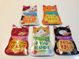 ペットショップでメルにそっくりなパウチのスープを発見!そして即買い(笑)スープやジェルは魚やチキンを使ったものが多いけれど、なんとこれには卵がゆ、ヨーグルト風ソース、豆乳のグラタンなど美味しそうなものが!!ニャンズ、喜んで食べるだろうな〜♪