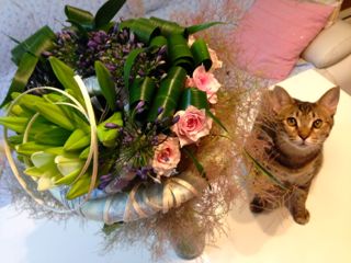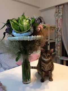ママが作ったブーケ。ソナタがとても気に入ってくれて、ちっとも離れようとしません。そんなに気に入ってもらえるなんて、嬉しいな♪