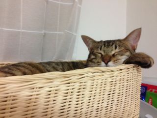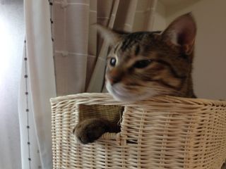 ソナタはプリンターの上に置いたバスケットが大好き。ここでも可愛い表情をたくさん見せてくれます♪