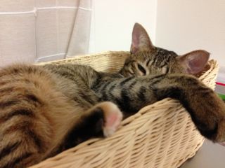 母猫とはぐれたらしく、鎌倉のお稲荷さんの橋の下でうずくまっているところを保護されました。保護主さん宅では家の事情で引き取ることが出来ず、病院に預けられること3週間。優しい先生と看護師さんに大事にケアされて、そして毎日保護主ママさんが様子を見に通って下さったこともあり、風邪も治って毛並みもツヤツヤ、元気な美人さんになりました♪