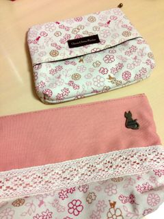 これからしばらく留守にするママ。最後の買い出しに行ったところで、こんなに可愛いポーチを発見♪ もちろん、持って行きます!