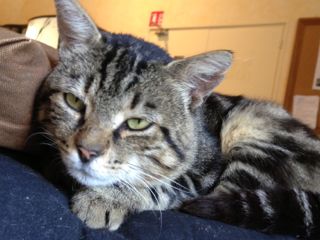 ママが通うスクールの猫「ビスコッティ」。学校の看板ニャンコ、男の子です。とても人懐っこくて、後頭部がソナタに似ています。