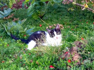 入室禁止なので、お外でお利口さんに待っているビスコッティ…でも「入れてよ〜、遊んでよ〜」とニャアニャア鳴くので、後ろ髪が引かれます。