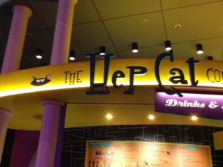 ディズニースタジオでは、なんとニャンコカフェ!!もちろん、ここでドリンクを買いました♪ でもカップの模様はやはりディズニー…残念。
