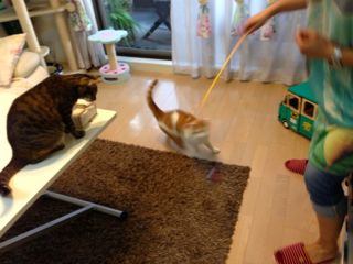 我が家のニャンズ、しっかり癒しになったようです。また遊びに来てね!!