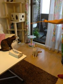 チズさんが遊びに来ました。メルとソナタ、いっぱい遊んでもらって楽しそう。ランチをしている間はニャンズは寝室でお昼寝。