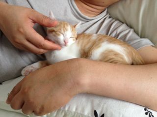 気温は低く春雨が連日降りしきる中、海老名の公園に捨てられていた4匹の子猫たちは、体温20度の低体温状態で発見されました。「助かるかどうか」と言われた子猫たち。残念ながら1匹は翌日、息を引き取りました。残った3匹のうち、女の子の「ひめ」と「きなこ」は里親が見つかってお嫁入り、男の子は我が家で引き取ることになり「メル」と名付けました。初めて出逢ったのは生後1ヶ月でちょうど離乳食が始まったばかりの頃。カリカリが食べられるようになるまで保護主さんファミリーに大切に育てて頂きました♪
