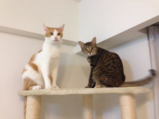 なかなか撮る機会に恵まれないニャンズのツーショット。お、今日は撮れた!二人とも、カメラ目線をありがとう♪
