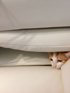 パパとママの心配をよそに、このソファを気に入っているみたいで、すっかりご満悦。狭さと薄暗さが心地よいのか、寝ていたりします(笑)