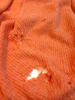 パパがお気に入りのサーモンピンクのカーディガン。とても綺麗な色でママもお気に入りだったのだけど…クローゼットの中でハンガーから落ちていたので掛け直そうとして気付きました…。。