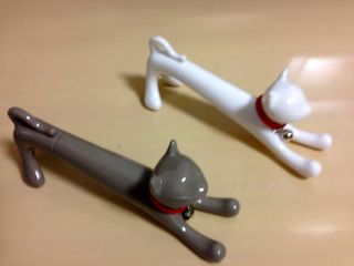 猫型のペン。おしりのところがキャップになっています。飾っていても可愛いね。お箸置きにはちょっと無理があり過ぎかな?(っていうか、大き過ぎです)内ポケットのないバッグを使うので、あれがないこれがない多いママには便利なバッグ・イン・バッグ。シルエットのニャンコ、たまりませんな〜♪
