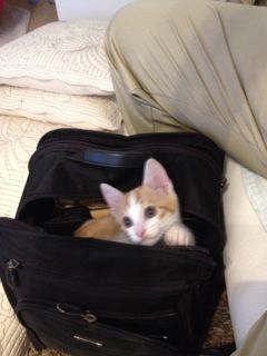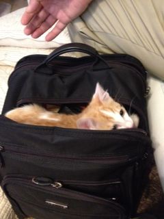 パパが出社の準備をしていたらメルがバッグの回りをウロウロ。「一緒に行くか?」とパパが声を掛けたら、ぴょんとパパのバッグの中へ入ってしまいました(笑)そして…なかなか出てこないメルでした☆