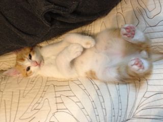 気温は低く春雨が連日降りしきる中、海老名の公園に捨てられていた4匹の子猫たちは、体温20度の低体温状態で発見されました。「助かるかどうか」と言われた子猫たち。残念ながら1匹は翌日、息を引き取りました。残った3匹のうち、女の子の「ひめ」と「きなこ」は里親が見つかってお嫁入り、男の子は我が家で引き取ることになり「メル」と名付けました。初めて出逢ったのは生後1ヶ月でちょうど離乳食が始まったばかりの頃。カリカリが食べられるようになるまで保護主さんファミリーに大切に育てて頂きました♪