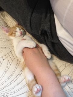眠る直前のメルはとっても甘えん坊です。必ずパパかママのそばでゴロンと横になります。撫でてあげると喉をグルグルならして気持ち良さそう。