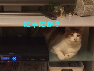 テレビ台を片付けて出来たスペースにすかさず陣取る猫王子。たしかにガラスだし、ひんやりして気持ちいいよね。掃除が終わるまで、おとなしくそこにいてくださいな。