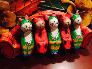 夜はホテルのでタイ古式マッサージ。マッサージルームに飾ってあったニャンコたち。可愛いよね〜。欲しいけれど、この素材はニャンズにかじられるのがオチなので、いつも眺めて終わります。