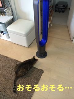 ダイソンの扇風機が届きました!早速我が家のリケジョのチェックが入ります。モノが大きいので、最初は恐る恐る。