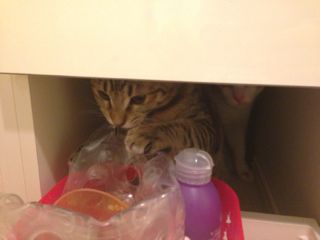 洗面台の下の引き出しの隙間から中に入り込むのがマイブームのソナタ。
