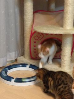 プレイサーキットを円にしてみました。エンドレスでボールがグルグル回るので、メルもソナタも楽しいみたい。