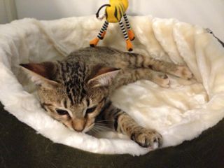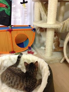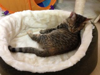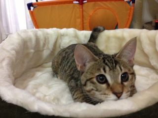 母猫とはぐれたらしく、鎌倉のお稲荷さんの橋の下でうずくまっているところを保護されました。保護主さん宅では家の事情で引き取ることが出来ず、病院に預けられること3週間。優しい先生と看護師さんに大事にケアされて、そして毎日保護主ママさんが様子を見に通って下さったこともあり、風邪も治って毛並みもツヤツヤ、元気な美人さんになりました♪